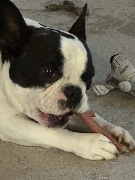 I knew this piece would be hard to write—that dog. I know I’ve forgotten some wonderful and endearing things he did—or bad—so be it. In his short Frenchie life, Rocky gave me a sense of pureness I didn’t think was possible from dogs. He was always happy to see me, beyond thrilled to see my wife and our sons. I’ve heard it described that dogs always react like they’ve won the lottery when they see you at the end of the day, in the morning, or whenever. It was the other way around for me; I always felt like we won the Powerball with Rocky. And since we still have Cliff, maybe we did.